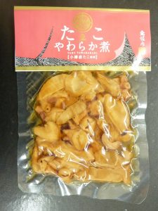 「たこやわらか煮」は小樽産の水タコを熟練の職人が塩もみしてサッと茹で上げ、特殊な製法で柔らかく醤油味で炊き上げています。